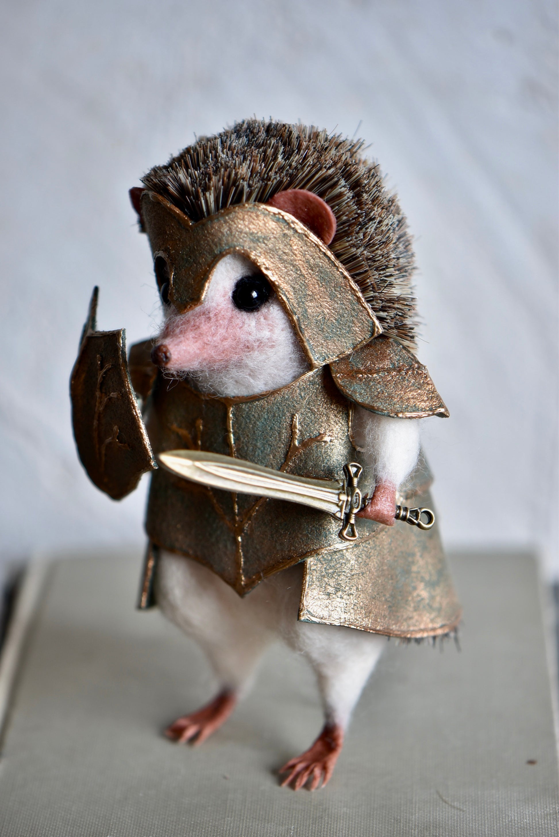 Handmade Needle Felted Character " Thornhelm the Hedgehog" - Wool Animal Sculpture- Rustles from the meadow