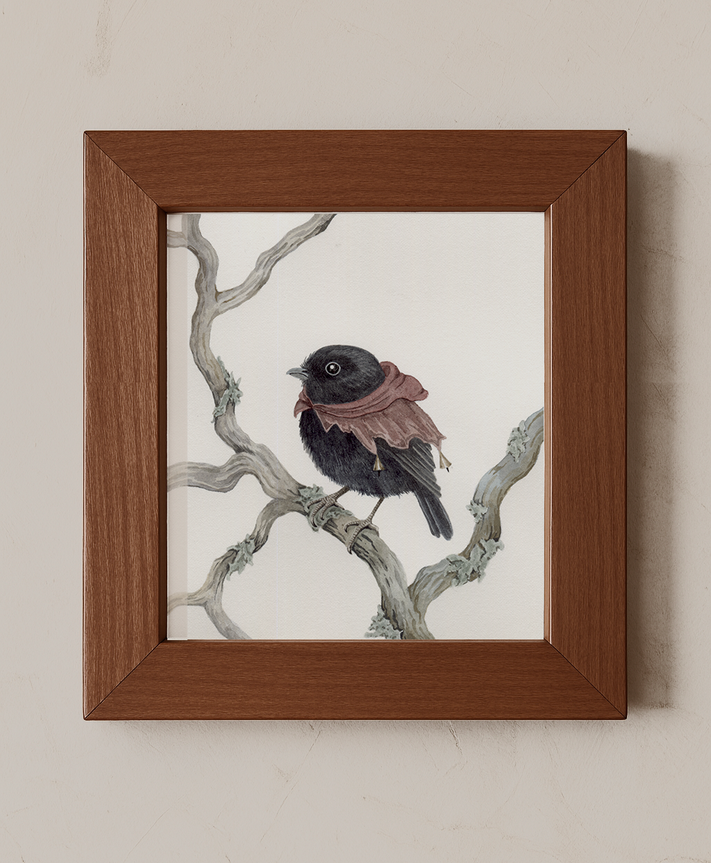 The artwork comes framed in a handcrafted natural wood frame, designed to complement the organic warmth of the illustration. Instead of glass, it is protected with a high-quality acrylic pane — lightweight, clear, and shatter-resistant.