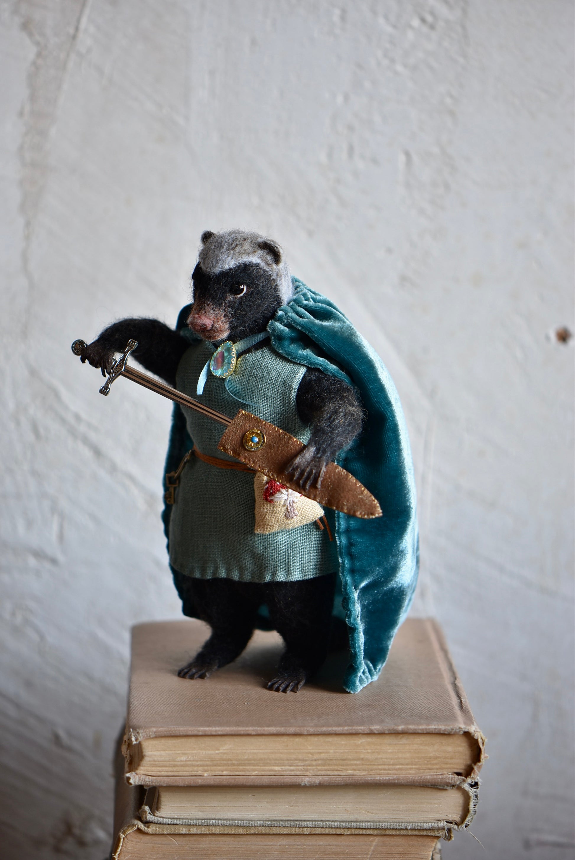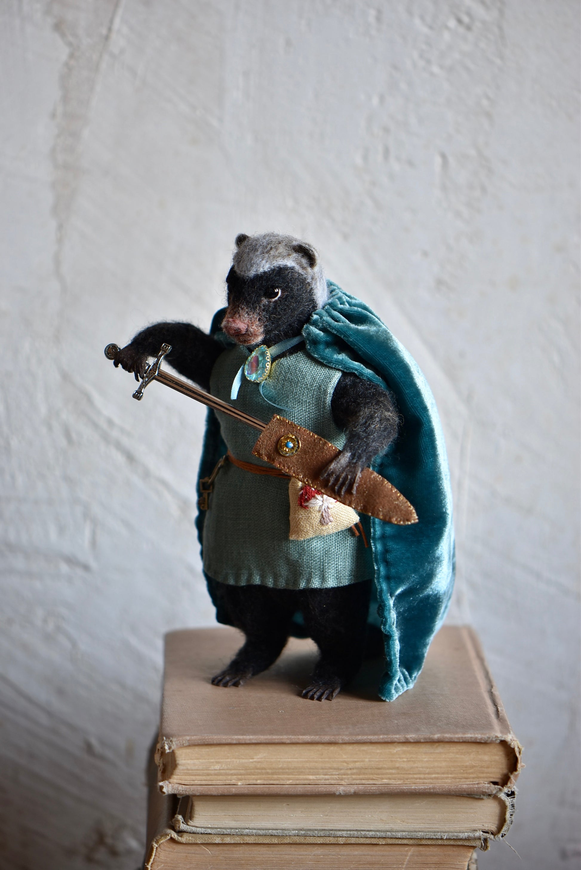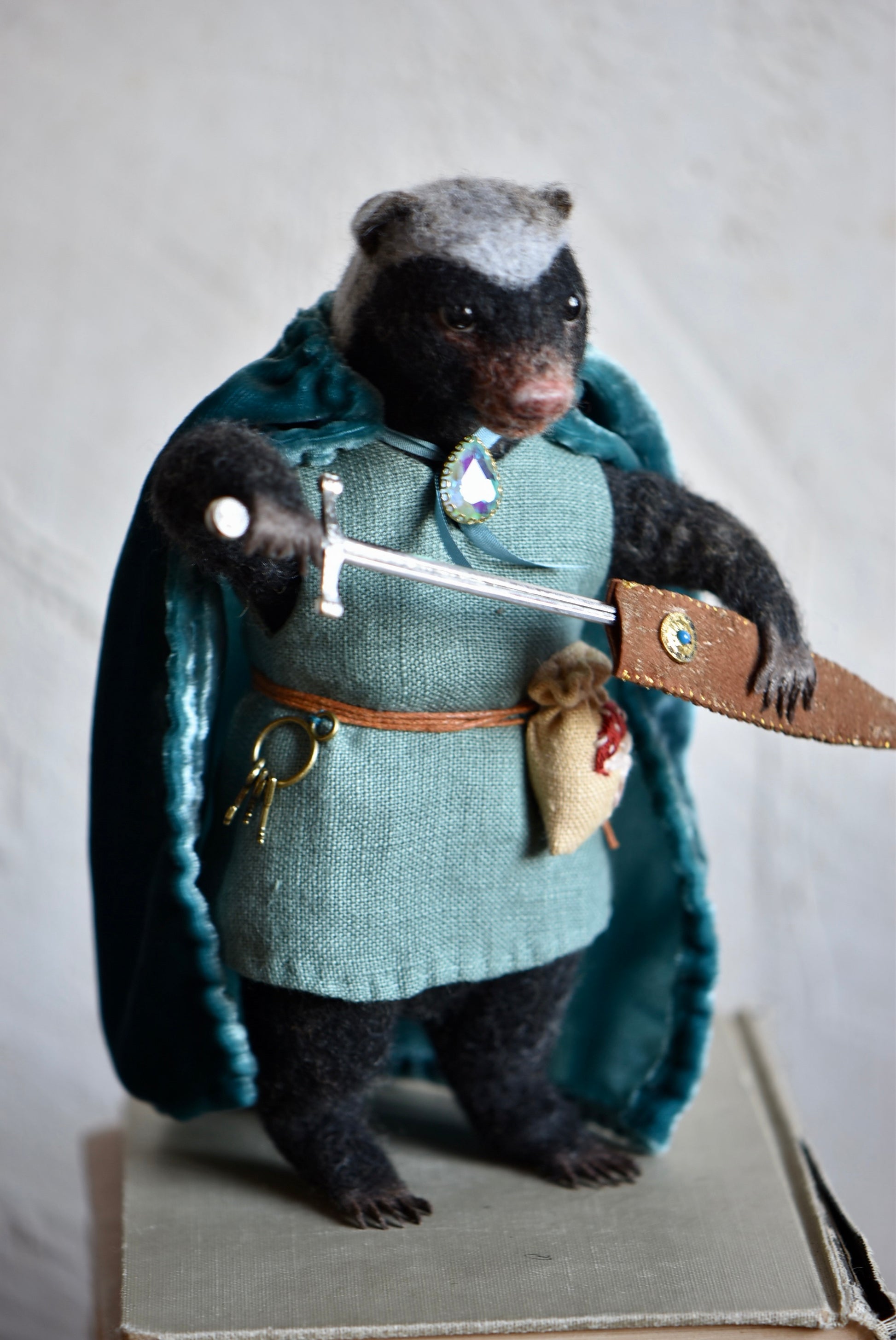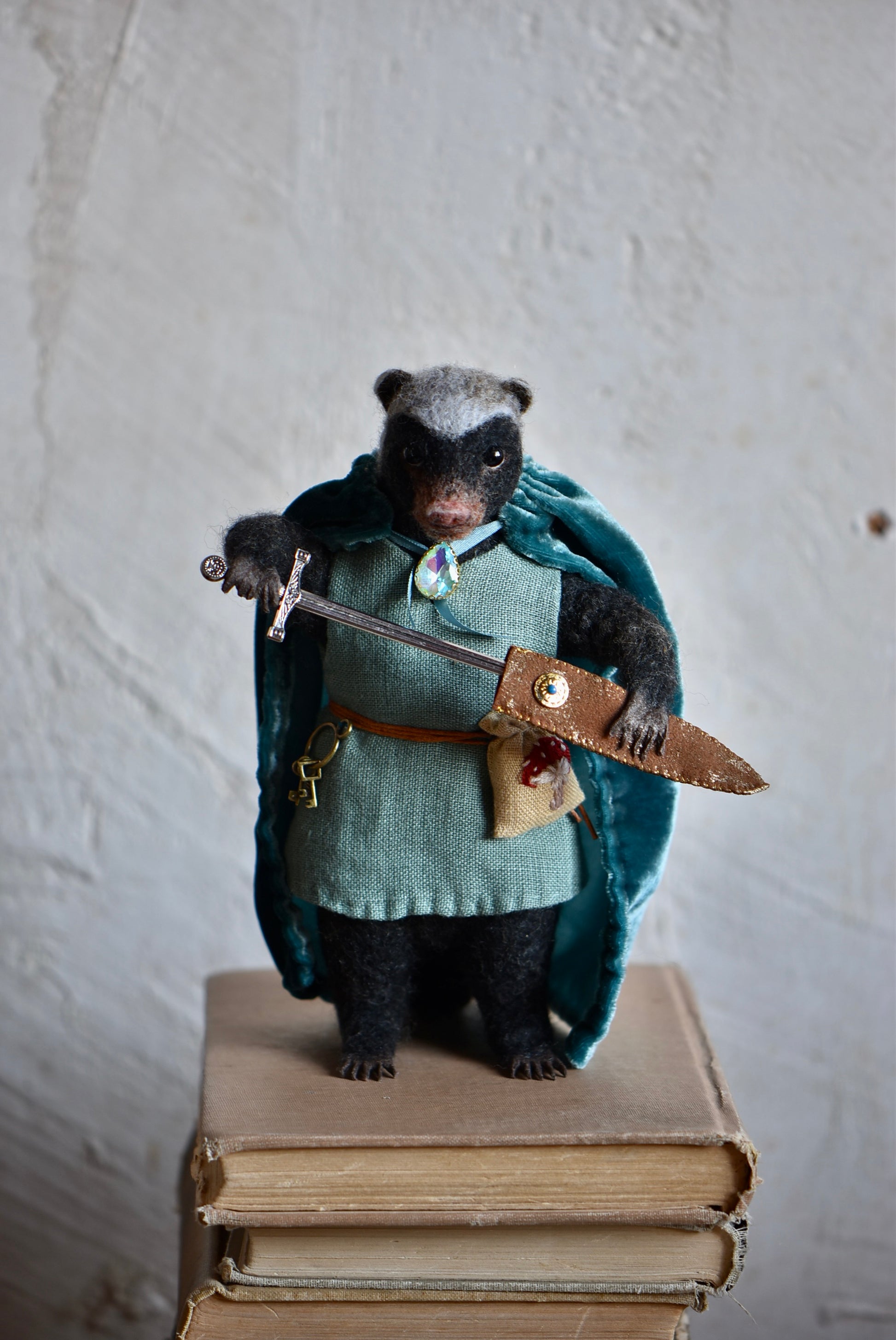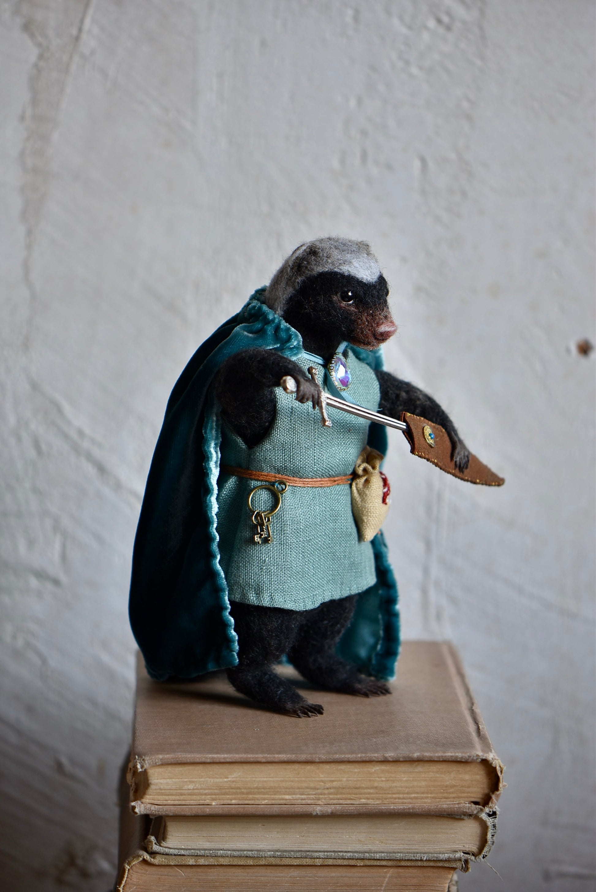 Handmade Needle Felted Badger "The Twilight Watcher" - Wool Animal Sculpture- Rustles from the meadow and Harthicune