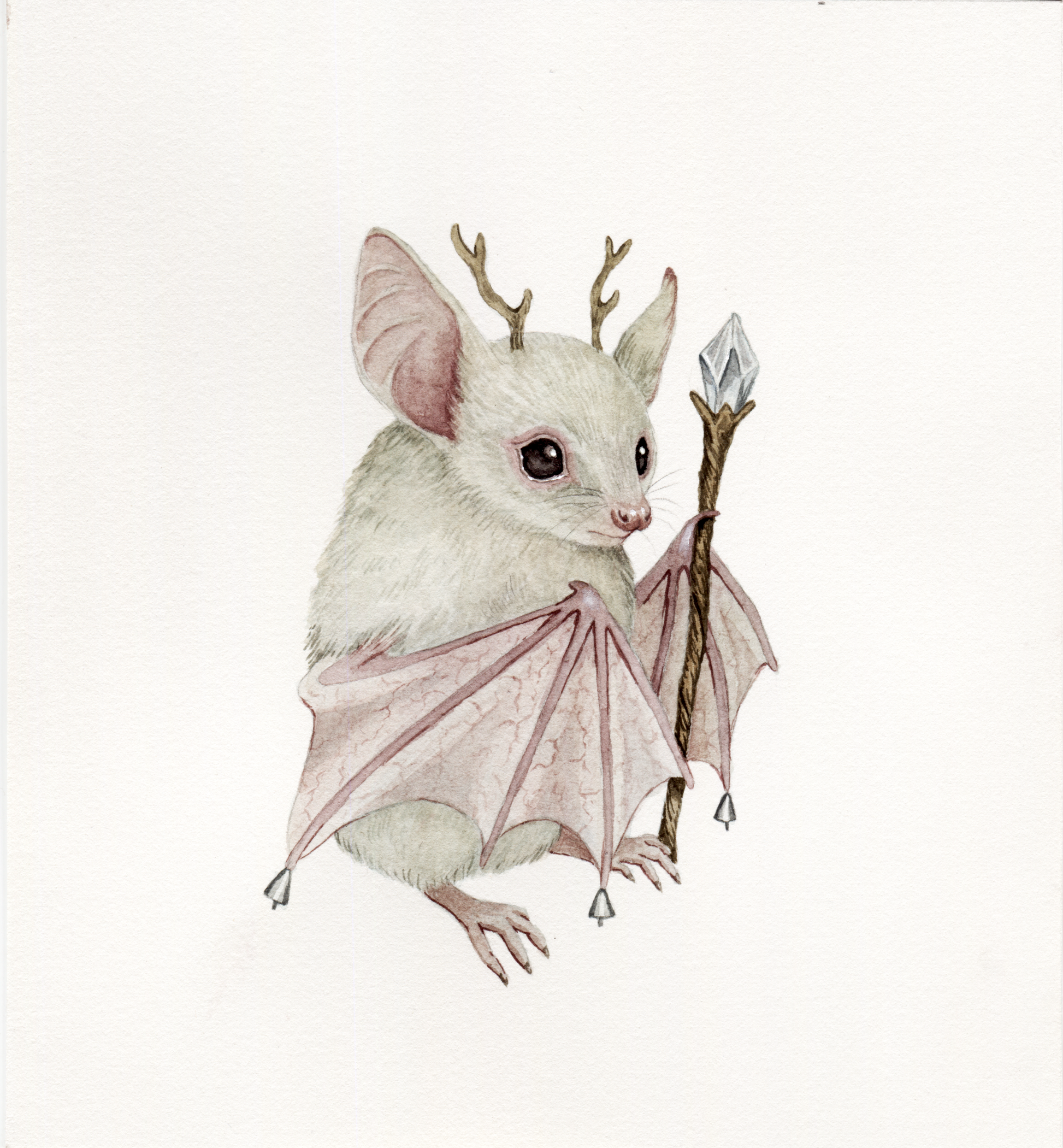 This is an original, hand-painted watercolor illustration from the Realm of Lullaby — a world where gentle creatures carry quiet magic through misty forests and ancient whispers.
